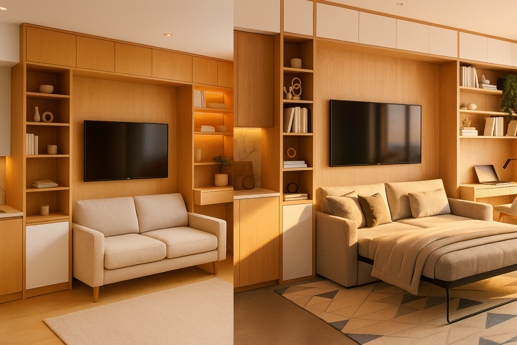 Moreover, space-saving design is not just about fitting furniture into a tiny room; it’s a practical response to modern living. By rethinking layouts, prioritizing multifunctional pieces, and using vertical storage, you can make a small home feel larger, calmer, and more useful. For example, a sofa that converts into a bed or an ottoman with hidden storage immediately multiplies the usefulness of a single item. Therefore, investing in smart design improves daily comfort and offers long-term value.